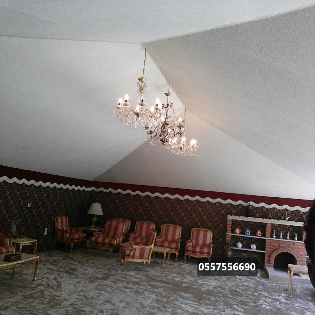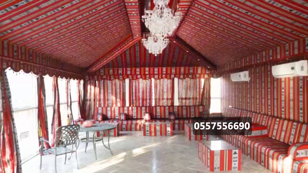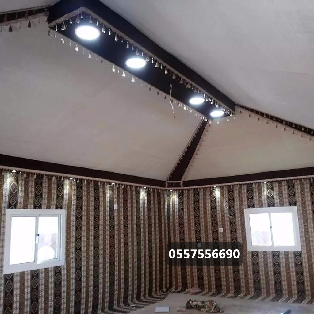 مواصفات بيت الشعر عازل مائي كوري – شعر مخطط نخبة أولى + غطاء من مادة PVC – ملتن – عازل حراري وطني – إرتفاع 2.5م أو حسب الطلب – شلش دائري قماش داخلي يتراوح سعر المتر بين 15-20 ريال – فرانشات – دناديش الأعمدة 8x8x1.25 ملي كورنيش على العقال الخارجي حسب الاتفاق – الصناديق20x20x1.25 ملي التيوبات2x4x1.25 ملي – المواسير1.5 بوصة x1.25 ملي – خشب سميك اندونيسي 9ملي – عمل واجهات زجاج فتحة الباب × فتحة المكيف الكهرباء + الالمنيوم + الفرش + الأرضيات على العميل فتحة شباك حسب الطلب